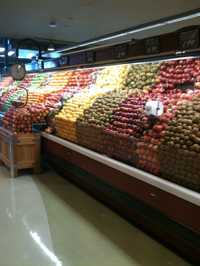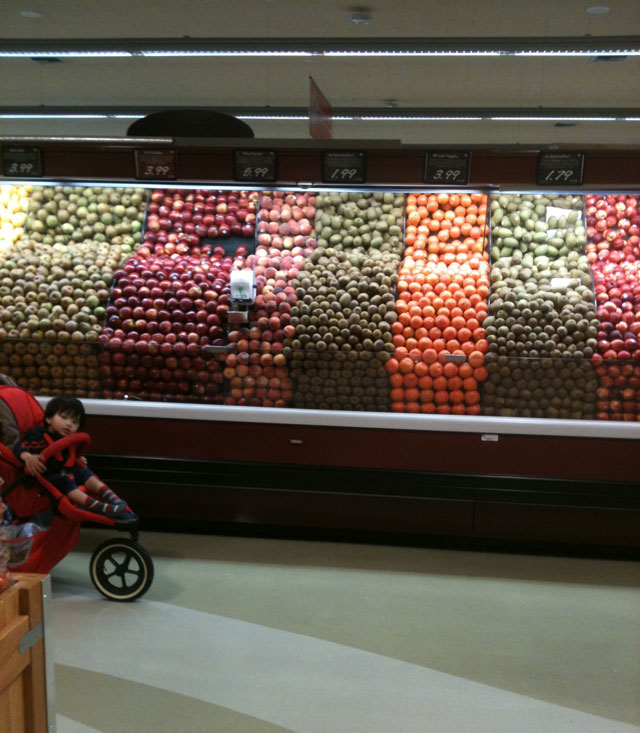 과일의 가지런한 진열이 확 눈에 띄었고 그 이외에는 보통의 대형마트와 마찬가지 진열형태였다.