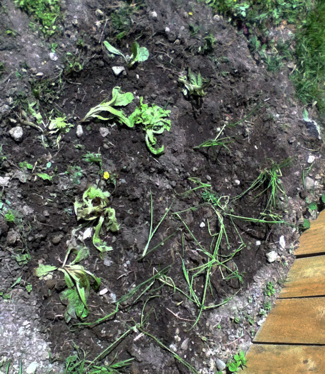 첫날 심고 쳐다보니 마눌의 표현을 빌자면 쓰레기장이었다.