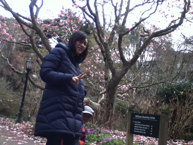 After about 30 minutes, we went to the Botanical Gardens by car. We took some photos of the gardens and ourselves, took a rest and strolled around for about one and half hours.