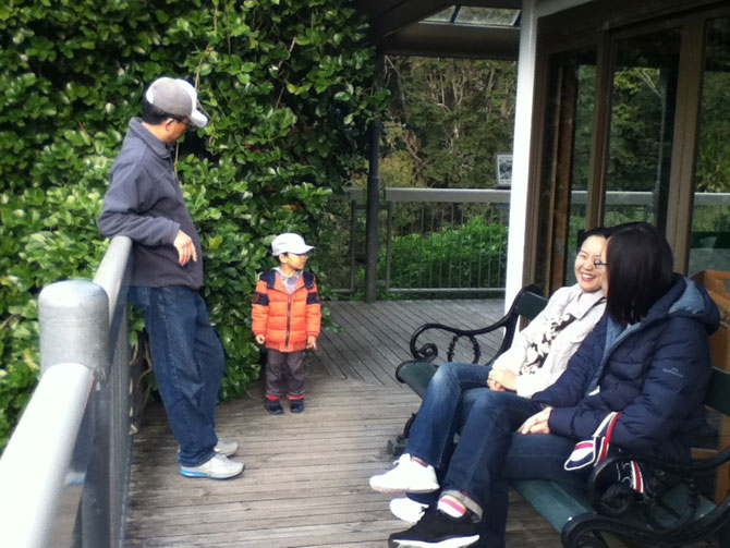 After we strolled around the gardens, we went to a famous cafe called “Blue Belle” in Island Bay to drink a cup of coffee and to eat some pieces of pie and a cake. After this I said “have a good night” and “see you” to my friend and my wife and I went home. Today I felt very happy.