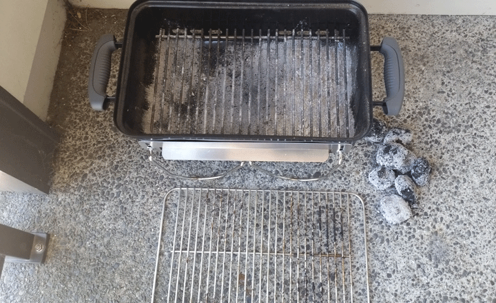 차콜의 재와 타지 않은 차콜들을 빼놓고 석쇠를 청소하면 된다.
