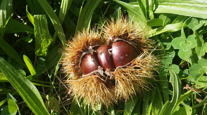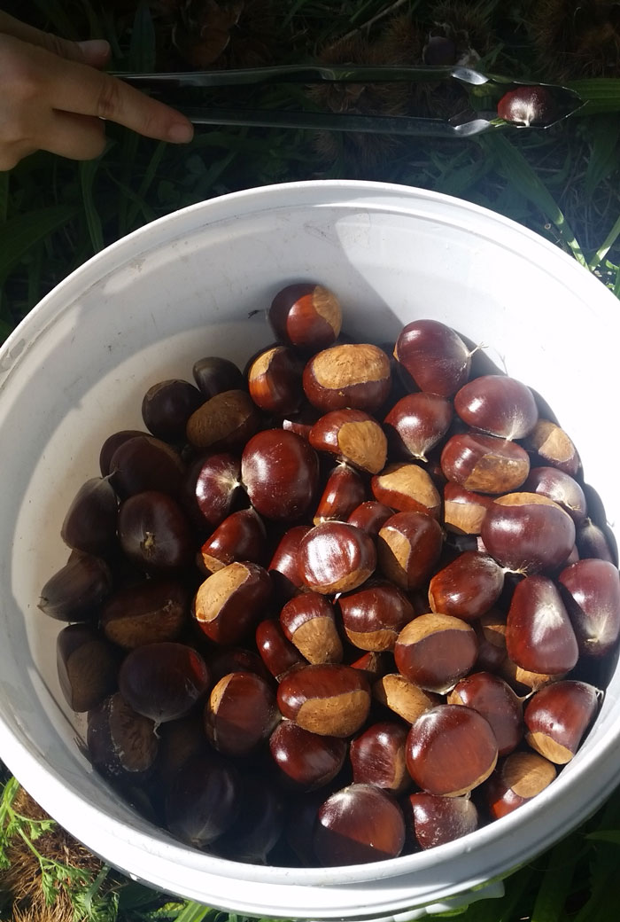 올해는 밤이 밤나무 밑에 널려 있었다.