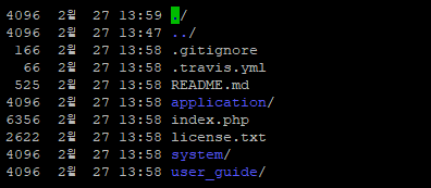 아래와 같이 CI 가 설치 폴더의 처음 열리는 index.php 있는 폴더에 ” .htaccess ” 파일 아래 내용을 참조해서 만들어 넣는다.